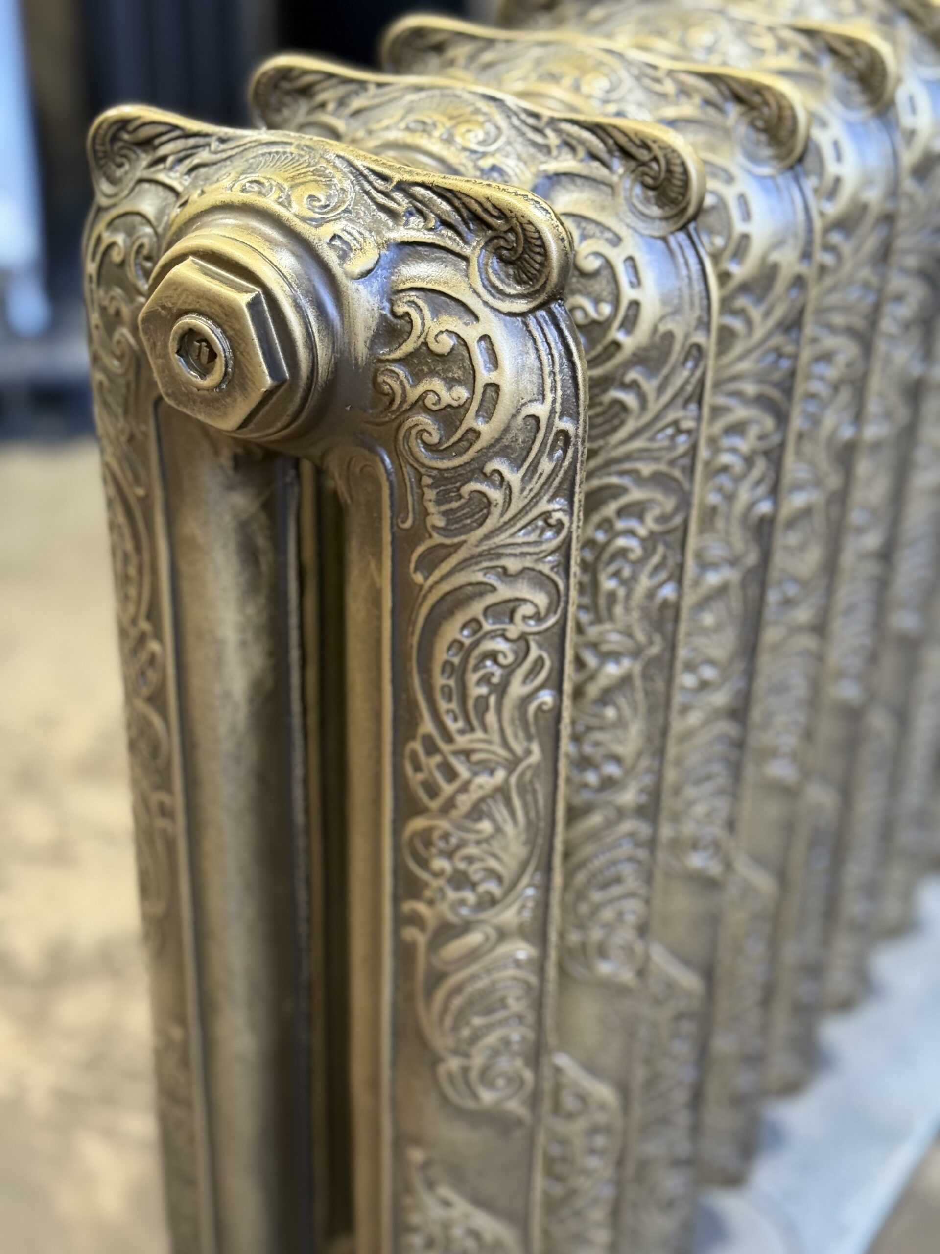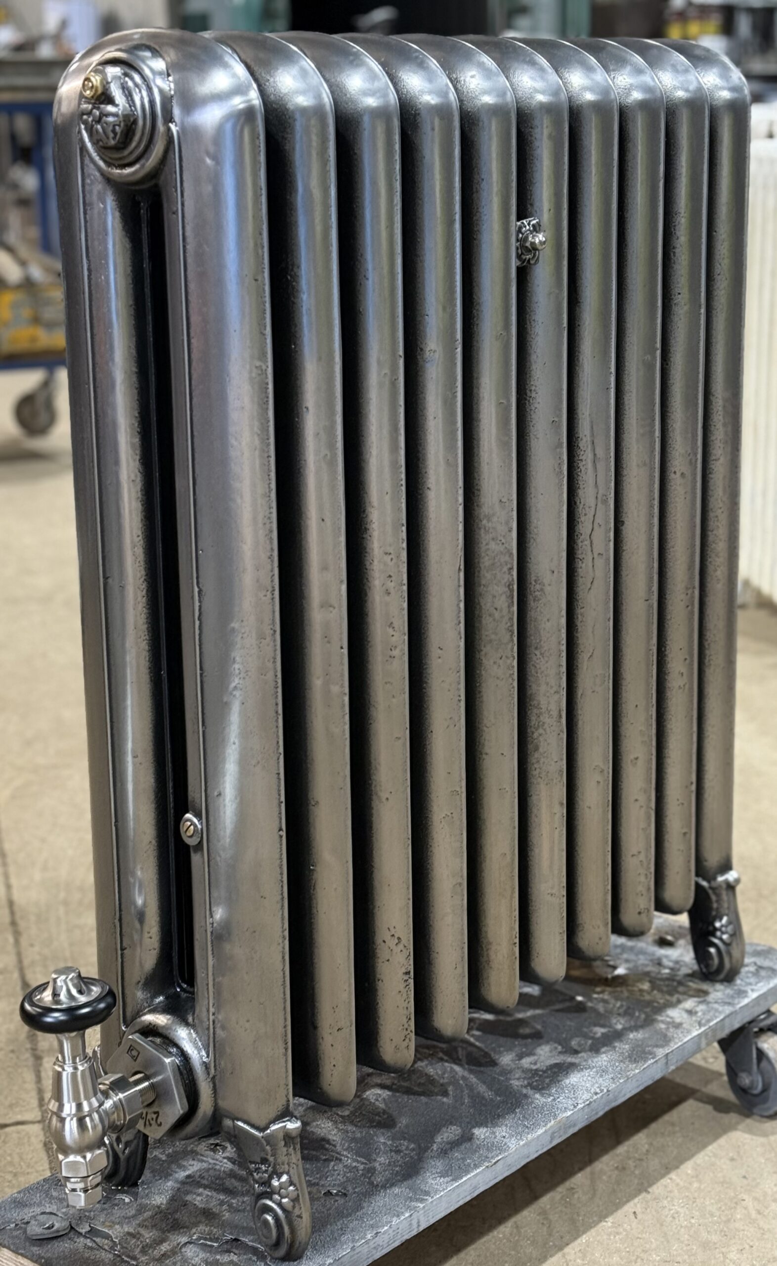 Beautiful polished Single Column Original Beeston Decorated Cast Iron radiator – Delivered this morning to North London