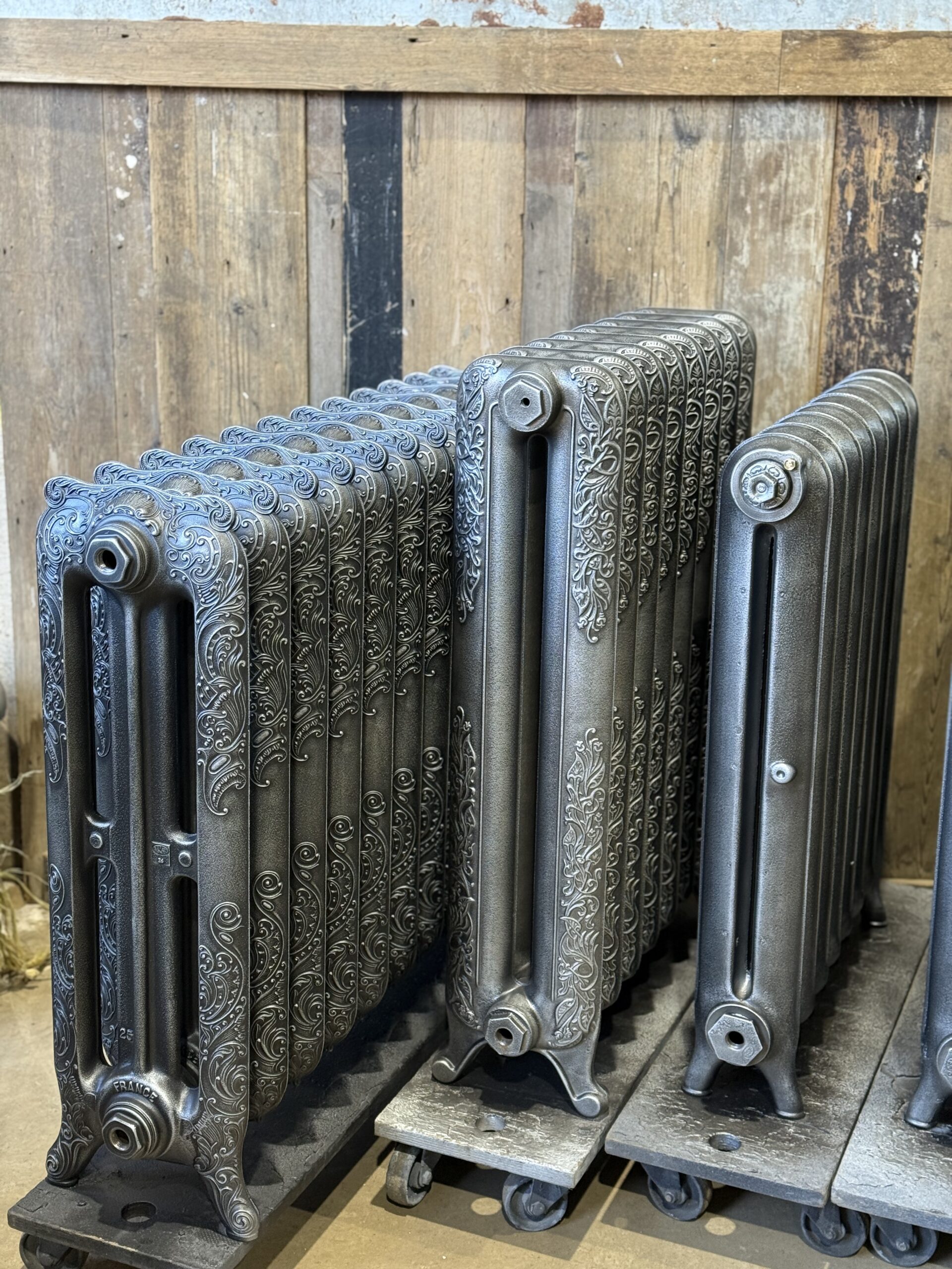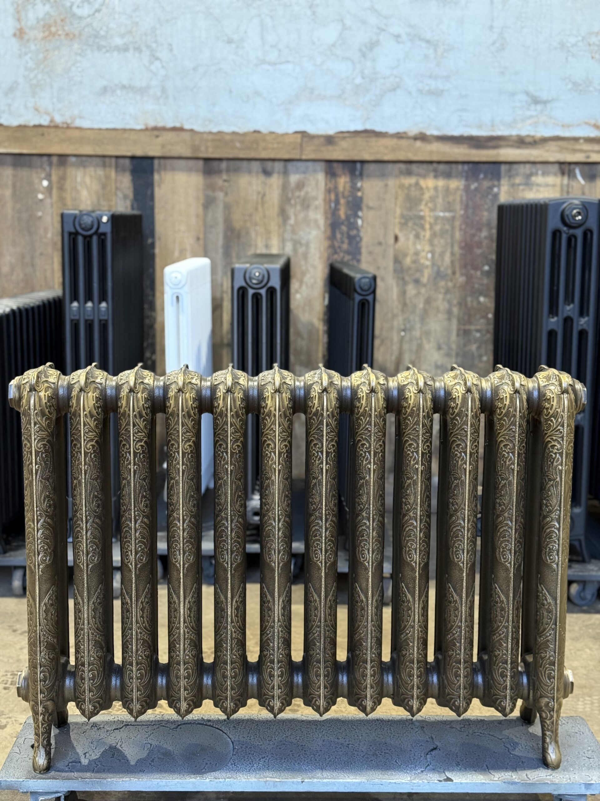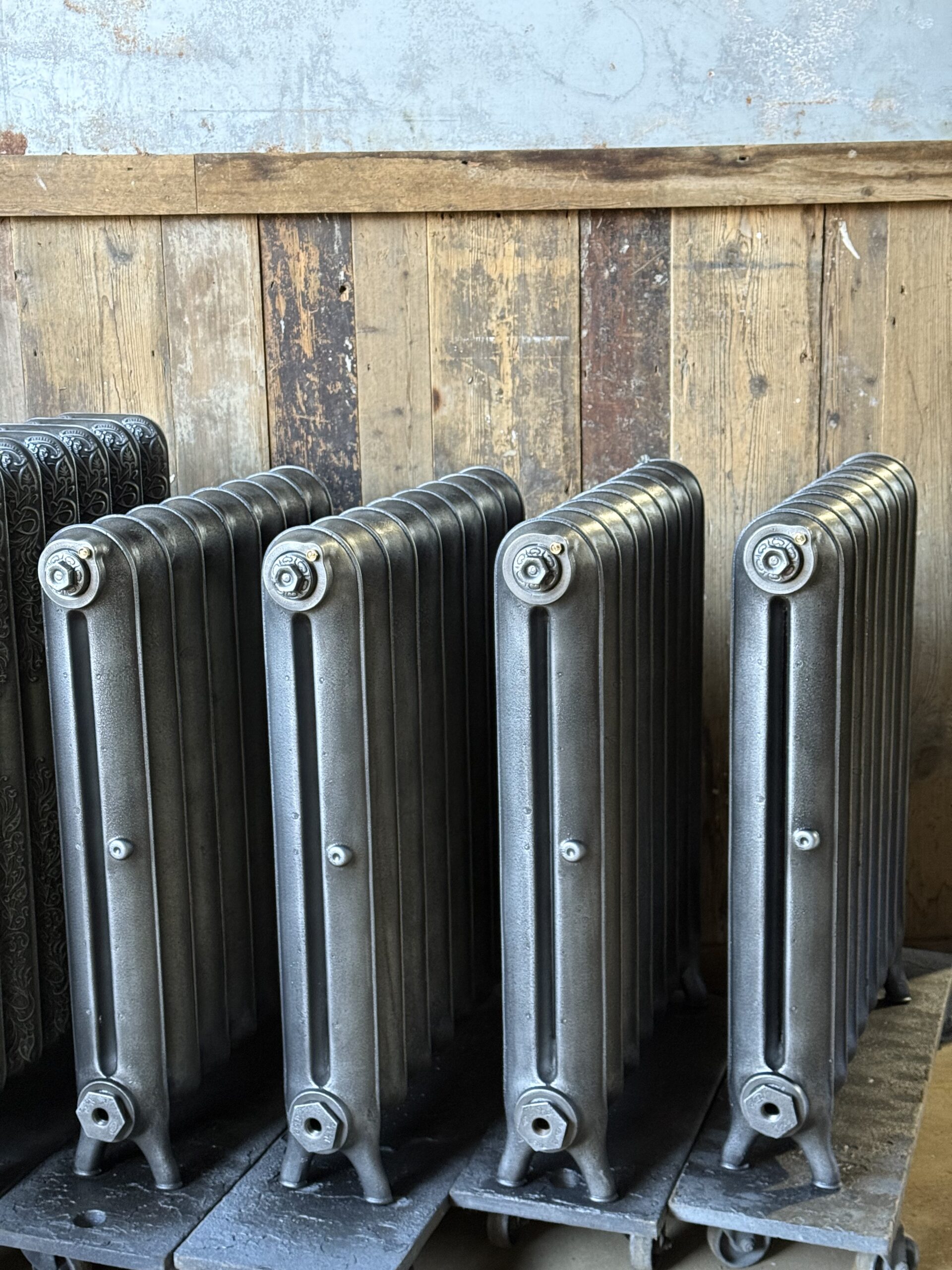 Batch one of 20 Cast Iron Radiators – finished in a special paint finish mixed by the Little Greene Paint Company.